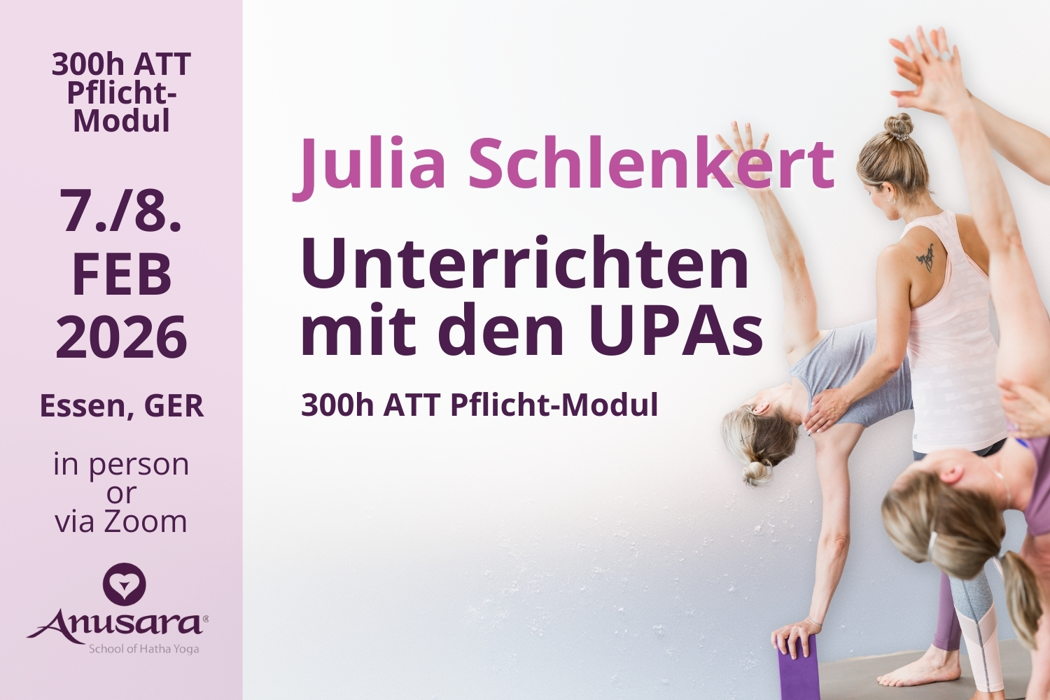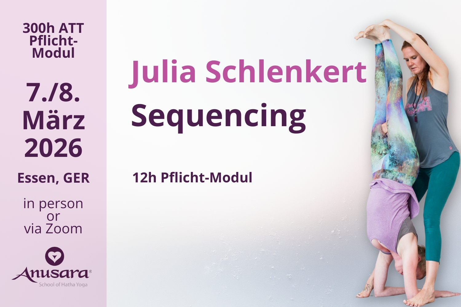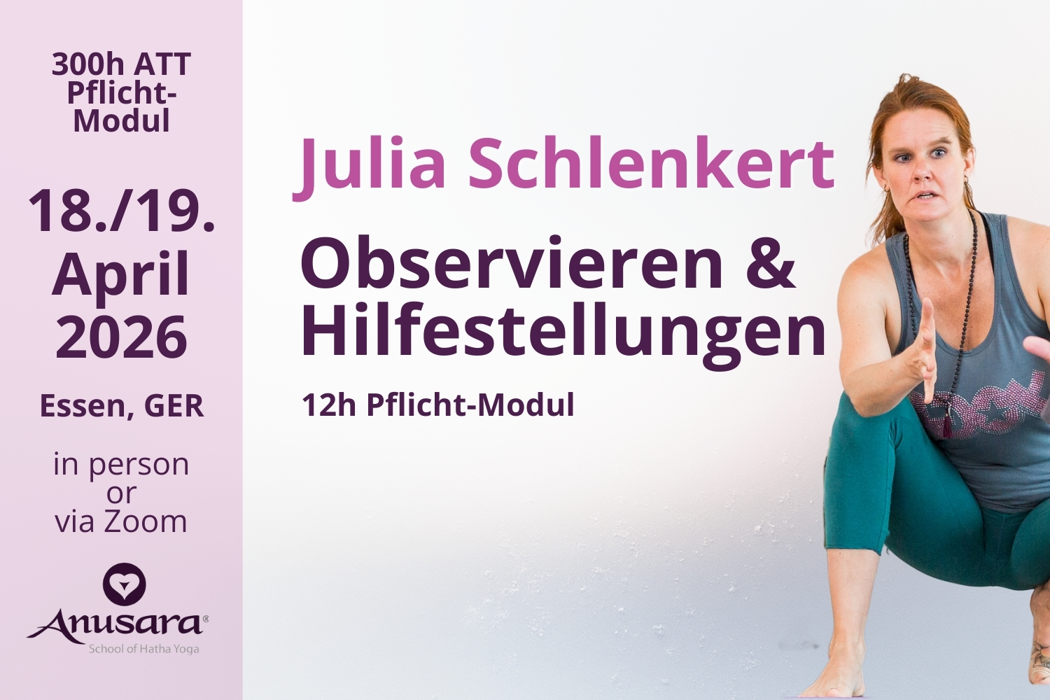 Als Modul wird in Zusammenarbeit mit der 300h-Ausbildung von Julia Schlenkert (ECAT) angeboten und kann als Teil eines Pakets oder als eigenständiges Modul gebucht werden.
